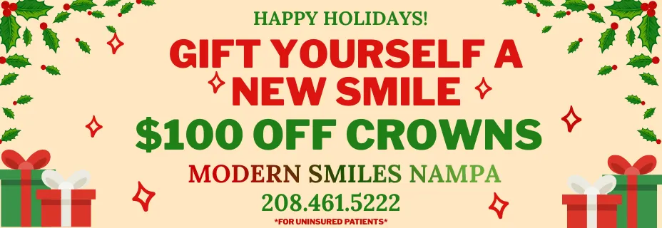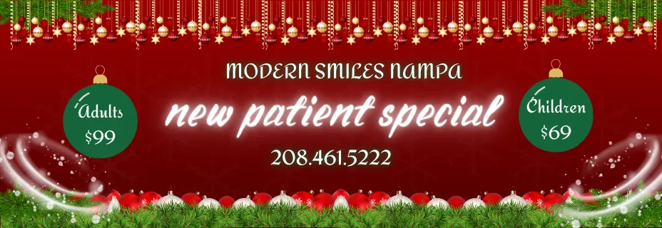 Explore our current dental specials and give your smile the attention it deserves at an affordable price. Our promotions cover a wide range of dental services in Nampa, Idaho, designed to enhance and protect your oral health. Perfect for both new and returning patients, these special offers make accessing quality dental care easier. For more details and to schedule your next visit with our dentist, Dr. Chris Satchwell, please call Modern Smiles Nampa today at 208-461-5222.